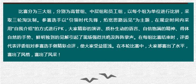 公司特舉辦第六屆員工PK演講大賽暨“引領(lǐng)時代先鋒,拓寬思路遠(yuǎn)見”